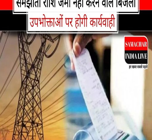 समझौता राशि जमा नहीं करने वाले बिजली उपभोक्ताओं पर होगी कार्यवाही।